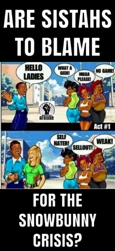 There is NO snowbunny “crisis”, what Dr Umar Johnson is witnessing is simply the fallout(results) of 60 years of dysfunction, treachery, deceit and betrayal wrought by the hands of black women against their own male counterparts.